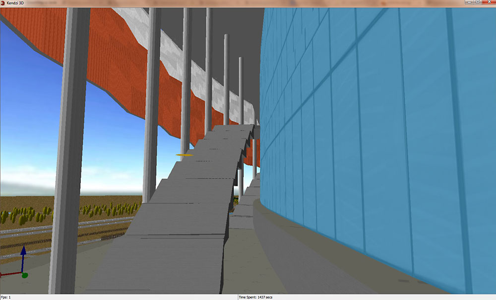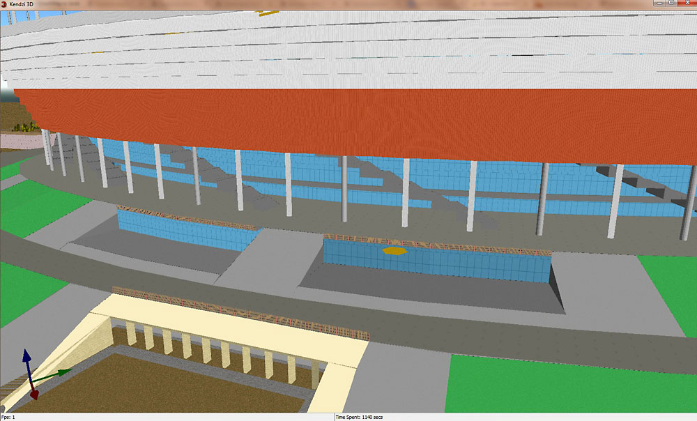 Otóż przez kilka dni (w wolnych chwilach) rzeźbiłem Stadion Narodowy. Niestety pod koniec dodawania kolejnych elementów Kendzi3D już nie wyrabiał. Po wysłaniu okazało się f4map (wzorowałem się na nieźle renderowanych paryskich Roland Garros i hali Bercy) też nie daje rady