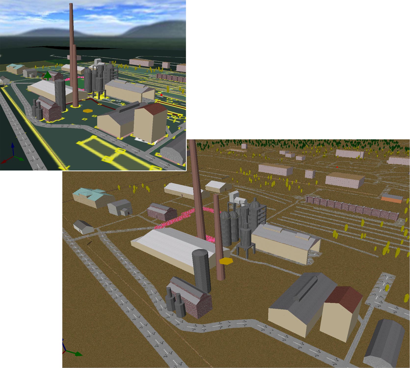 Jako, że wrzucamy tu przykłądy 3d, pochwalę się modelem starachowickiego zakładu wielkopiecowego (obrazek linkuje do powiększenia):